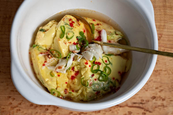 Silky steamed eggs in chicken broth made seductive with light Korean accents, gyeranjjim seeks a spoon and a bowl of rice grits for company.