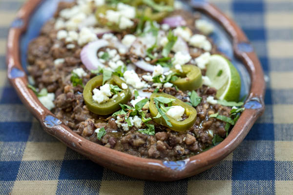 This Sea Island Red Pea adaptation of classic refried beans is creamy and savory-sweet, far surpassing more conventional legumes, in our view. The peas are extraordinarily comforting in the company of arroz rojo, below.