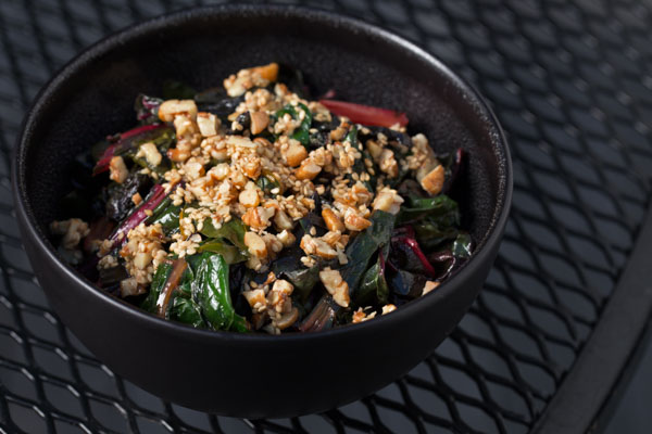 This recipe is a subtle nod to the hidden gardens of the 18th century in our region where slaves secretly grew food and medicinal plants deep in the woods. Benne Greens was a verdant stew made from young leaves of the benne plant cooked slowly over low fire with foraged alliums and herbs. We make this dish for ourselves in the fall as the last fields of benne burst with young leaves. You won’t find fresh benne leaves at a farmers market—yet—but we offer in their stead young chard drizzled with a buttery streusel of toasted benne seeds and sweet chopped pecans, a lovely enhancement to a dish of garlic greens. The “streusel” would enhance any number of vegetables: all greens, roasted cauliflower, green beans, cooked beets.