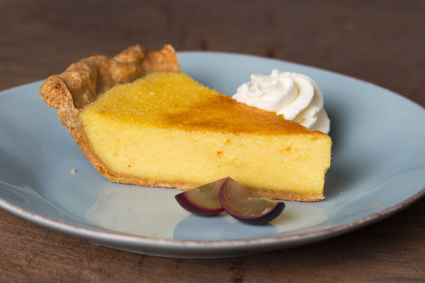 In line with our exploration of fresh ingredient impact on long lost classics, here’s a throwback: chess pie. Our take is a marriage of meso-American and Old World food concepts: eggs, dairy, toasted maize, and some Atlantic world sweetness baked in a pie shell replete with the flavor of whole butter and new crop wheat. The baked filling texture rests somewhere between spoonbread and mush set off by a lovely, rolling and nearly indistinct beading on the tongue. We haven’t, strictly speaking “improved” chess pie in this recipe, but we do honor its heritage with new vigor.