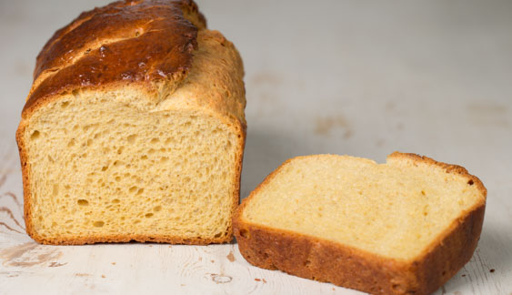 We revisited our recipe on the way to making French toast and found it wanting in strength. Out went the romantic-sounding cake flour. Up went the eggs. We discarded procedural fussiness and brought in a simpler shape. What remains: a sturdy, moist brioche with a soft, open crumb and the extraordinary flavors wrought when Anson Mills French Mediterranean Bread Flour, butter, a small amount of yeast, and two long, slow rises trigger exquisite fermentation flavors and a uniquely flavorful crust.
