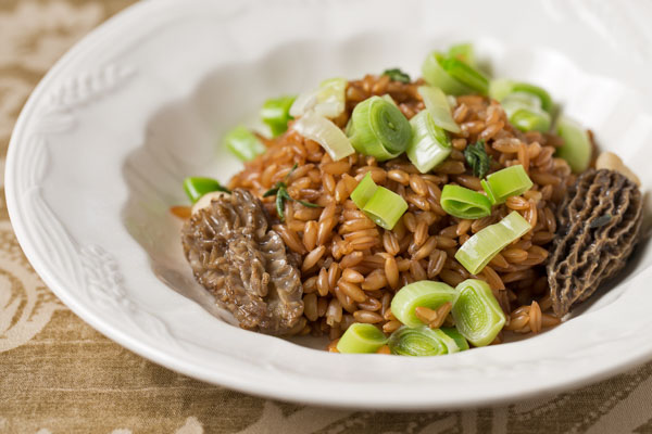This lovely recipe was reverse engineered from Glenn’s farro pilaf idea where all elements cook start to finish in the same vessel, the ancient way. But the farro’s cook time eliminated any possibility of meaningful synchronicity between the grain, allium, and fungi. Now the farro, put to simmer in stock infused with leek and morel essence, cooks wistfully on its own, while the two remaining early stars of spring enjoy gentle butter baths. We fold the leeks into the finished farro, and let the mushrooms play along the edges. A beautiful compromise.