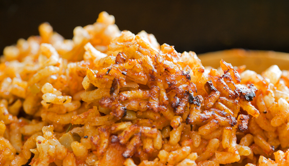 A rebuke to the legions of bad recipes in its name, this red rice comes out of the pot swirling with agreeable contrasts: cool bay, hot spice, warm tomato, light smoke. If you get lucky, it will have a fine, crisp bottom crust and the grains of rice on top will be plump, separate, and drunk with flavor. (The rice will be plump, separate, and drunk even if the crust doesn’t happen.) Minced mushrooms and a dash of vinegar stand in for the historically correct mushroom ketchup and represent a distinct improvement over the sweet tomato ketchup present in many recipes today.