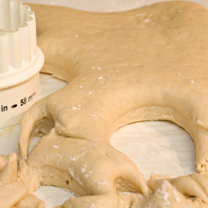 For this recipe you, will need a digital scale, a small saucepan, a medium mixing bowl, a rolling pin, a stand mixer with a flat-beater attachment, a rubber spatula, a bench knife, two or three baking sheets, parchment paper, a pizza stone, a 2¼-inch (give or take) biscuit cutter, and a pastry brush.