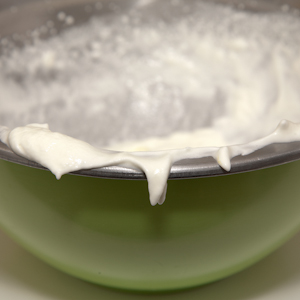 Just before beginning the crêpe cake assembly, fold the lightly beaten whipped cream (fig. 5.1) into the chilled pastry cream. The cream will be light and airy (fig. 5.2). Set it aside.