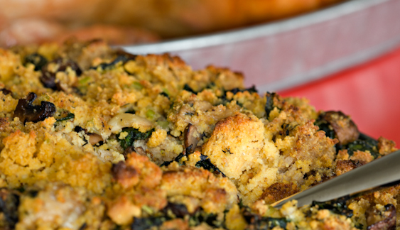Though “stuffing” may be seen as the oldest way to create a side dish, “dressing” prevailed in the South, and dressing was never shoved into a bird. Why? Because Southern tradition dictated that holiday fowl be hunted and cooked the day of the feast itself, and attended by as many wild foraged things as possible. With pressure like this, kitchen speed became the prime directive, and a hollow bird cooked faster than a bird whose belly was full. Thus, the dressing, too, cooked alone.