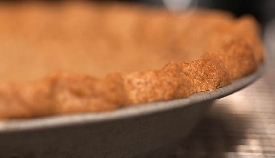 When we decided to go graham, we went graham with crackers made from Anson Mills flour, of course. The resulting crust was pretty terrific, principally because our graham flour is 100 percent whole grain with fat, crunchy flecks of bran straight out of the 19th century. Still, it seemed silly to perform double baking duty when we had, at our fingertips, a singularly fabulous graham flour. Why not a proper crust, one to roll out and crimp?