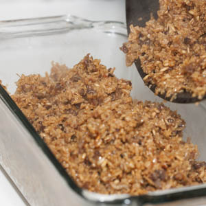 Pay attention to the timing on this recipe: there is a balance between liquid ratios and cooking times that must be observed to keep the oats in their optimal state. It is also important that the minced meat be hot when you mix it in with the oats as we advise below.