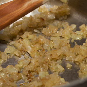 While the rice cooks, caramelize the onion: Heat the oil in a large skillet over medium heat until shimmering. Add the onion, salt, pepper, and allspice and cook, stirring frequently, until the onion is caramelized, about 10 minutes (fig. 3.1). Remove the skillet from the heat and set aside.