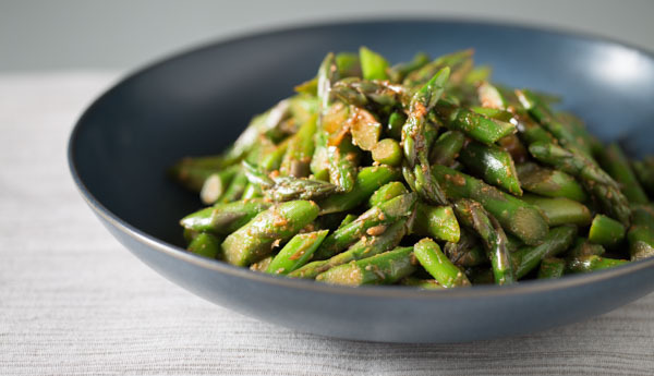 Extra-slender asparagus offers the best the sauce to stalk ratio in each bite. If you can find only medium-thick spears (those with a diameter similar to a pencil), cut them into thin pieces on a sharp bias. Don’t bother with super-thick asparagus here.