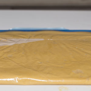 Turn the eggs, confectioners’ sugar, and superfine sugar into a clean stand mixer bowl and set the bowl snugly onto a saucepan filled with about 2 inches of water (the water should not touch the bottom of the bowl). Set the saucepan over medium heat and whisk until the mixture registers 130 degrees on a digital instant-read thermometer, about 5 minutes. Attach the bowl to the stand mixer fitted with the whisk attachment. Using a paring knife, scrape the seeds from the vanilla bean halves and drop the seeds into the egg mixture along with the lemon zest. Beat on high speed until the mixture is pale yellow and thick (fig. 2.1), about 10 minutes. Reduce the speed to low, add the Kirschwasser, and mix to incorporate. Remove the whisk, knock it clean against the side of the bowl, and attach the flat-beater to the mixer. With the mixer running on low speed, add the flour in 3 batches. Add the dissolved baker’s ammonia and mix on low speed for 10 minutes; the dough will become strong, sinewy, and very sticky, and the machine will buck like a pony. Turn the dough out onto the countertop and knead it for a couple of minutes without adding additional flour; it will be heavy and sticky but fine and very smooth (fig. 2.2). Place the dough in a gallon-sized zipper-lock bag, and, using a rolling pin, roll the dough so that if fills the entire bag (fig. 2.3); it will be the desired thickness. Seal the bag and refrigerate overnight, laid flat.