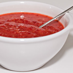Transfer the strawberries with their juice to the blender and pulse to a slightly lumpy purée, scraping down the blender as needed; do not over-purée the berries, which creates an undesirable foaminess. Pour the strawberry purée into a small bowl (fig. 4.1).