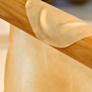 If the dough feels under-hydrated, feel free to sprinkle a few drops of water lightly from your fingertips and give it a light knead. If the dough becomes over-hydrated, however, rolling it out will be very challenging. We recommend little or no additional bench flour for the rolling process.
