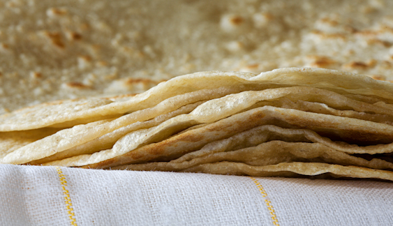 Transfer the tortilla to a clean kitchen towel, folding the towel over the tortilla to keep it supple. Roll out and cook the remaining tortillas, stacking them directly on top of each other. If you will not be using the tortillas in the next hour or so, let cool to room temperature, transfer them from the towel to a gallon-size zipper-lock bag, and refrigerate for up to 3 days. To reheat and serve the tortillas as accompaniment to grilled chicken or steak, warm them for a few seconds on each side on a medium-hot griddle.