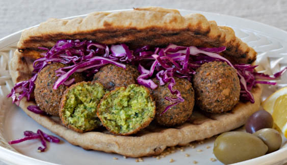 This recipe yields about 20 small falafel, which could certainly feed four people for lunch or dinner, especially if accompanied by our grilled flatbreads and sauces. It is also simple enough to double the recipe. The shaped but uncooked falafel freeze well, too, for longer storage: After shaping the balls, freeze them uncovered until firm and frozen. The falafel can then be transferred to a freezer-quality zipper-lock bag and frozen for up to 1 month. To prepare from frozen, remove the number of falafel you wish to serve and align in a single layer on a towel. They will thaw completely in about 30 minutes and can be fried as directed.