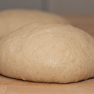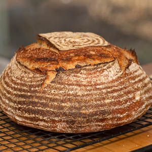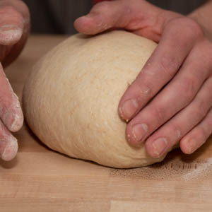 Because it lacks the thirstier bran of whole-grain flour, this dough does not require as much water as its companion Red Fife boule, yet produces a firm, easily shaped dough. We’ve abandoned the “stitching” technique to build tension in the final shape and rely instead on two-handed rounding. The dough also feels quite extensible—the baker’s hands aren’t forced to compete with sharp shards of bran that can cut through the gluten network.