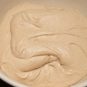 Day 2, 8:00 a.m. —feed the final levain: In a small saucepan, warm the water to 90 degrees. Pour it into a small bowl, add the 45 grams refreshed levain, and stir until well combined. Add the flour and mix until no dry bits remain and the mixture is homogenous. Cover the bowl with plastic wrap and place in a warm area, a spot where the dough will maintain an internal temperature of about 80 degrees.