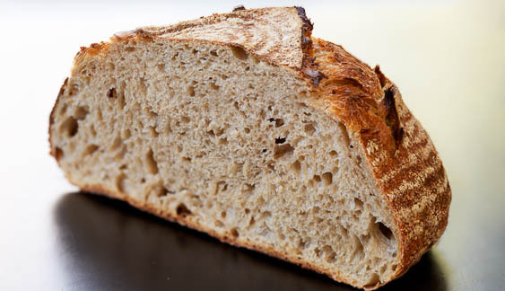 Anson Mills bolted French Mediterranean White Bread Flour, which is made from a white heirloom wheat with a particularly fine bran layer, produces breads with a creamy beige crumb that bear no trace of tannin in their palate finish. The process we use to prepare this boule is very similar to that of the naturally leavened Red Fife boule, but this boule’s flavor is mild and sweet, as opposed to nutty and robust. The flavor complexity of French Mediterranean bread flour can, on the other hand, make you swear you’re eating whole grain. It’s a winning combination all round.