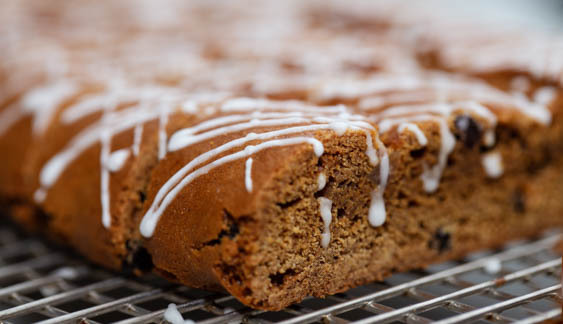We created an old-fashioned hermit recipe. No ground or candied ginger enters the formula (ginger was not a spice historically associated with hermits). And there is no creaming required—no mixer, no fuss. The candied citron join currants in our version because its flavor and texture are unusually compatible with others in this cookie. And because the dough is not overly sweet, the simple icing offers both visual and experiential enhancement.