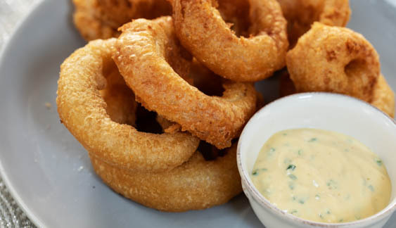 The onion in an onion ring must never be subordinate to its coating but the two must fuse together as one.