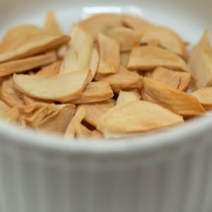 If it sounds crazy to oven-dry garlic and shallots just for a dip, feel free to sprinkle from a jar instead. Or, if you have a food dehydrator, you’re already ahead of us. Read past the machinations of our improvised oven-drying technique.