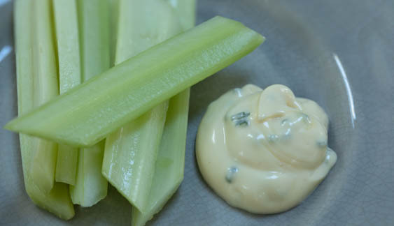 We chose not to add buttermilk, preferring a thicker consistency for dipping. But the dip would make a fine salad dressing if thinned with milk or buttermilk.